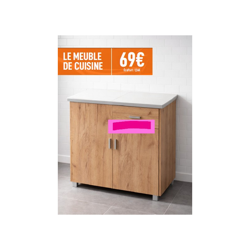Rangement : 1 grande porte à gauche, 1 petite porte à droite et 1 tiroir