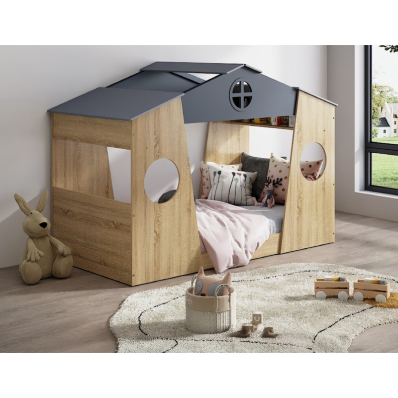 Le lit maison Oak/Gris est un meuble à la fois ludique et fonctionnel, idéal pour une chambre d’enfant. Avec son design en forme de maisonnette, il apporte une touche chaleureuse et originale à l’espace nuit.