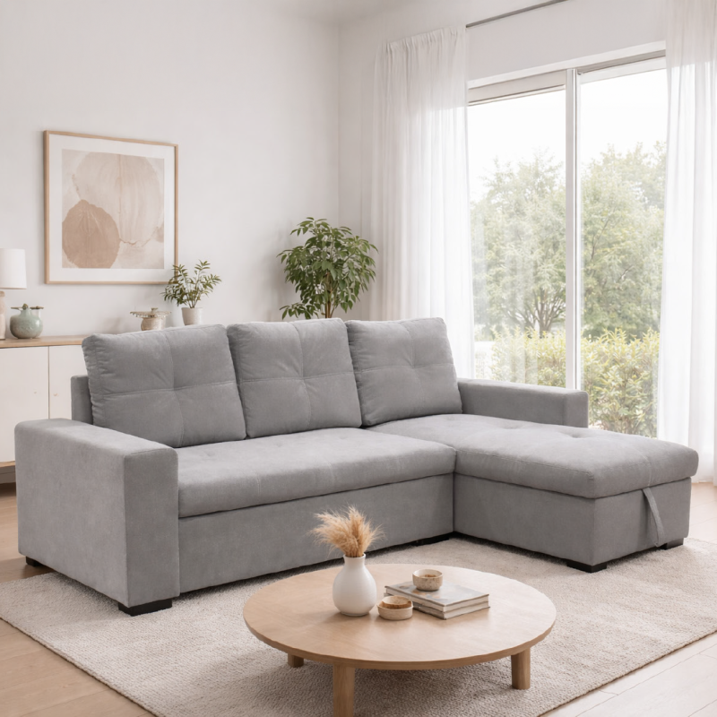 Canapé d'angle convertible et réversible. ✅ Avantages de l’angle réversible : S’adapte à tous les espaces (gauche ou droite). Idéal pour réaménager ou déménager facilement. Style modulable et pratique. Description : Ce canapé d’angle moderne allie confort et robustesse avec un design élégant, idéal pour tous les intérieurs. Son revêtement en tissu...