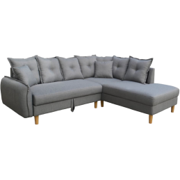 SALON D'ANGLE + COFFRE DE RANGEMENT - 3 COLORIS  Caractéristiques :  Revêtement en tissu 100% polyester  Garnissage en mousse polyuréthane de densité 12/24 kgs/m3  Ressorts ensachés et sangles élastiques  Structure en panneaux de particules et contreplaqué  Piètement en bois coloris naturel  Angles :  Droit  Gauche  Coloris :  Voir photo des coussins...